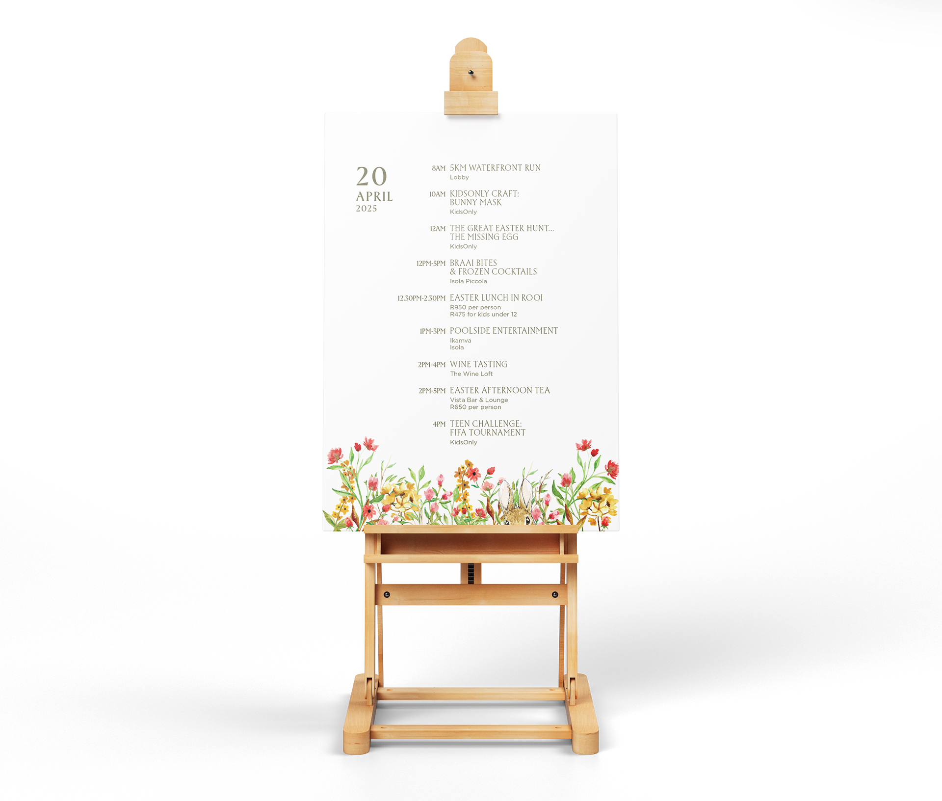 Implemented a new identity across collateral and marketing materials as part of a poolside and restaurant refurbishment project.