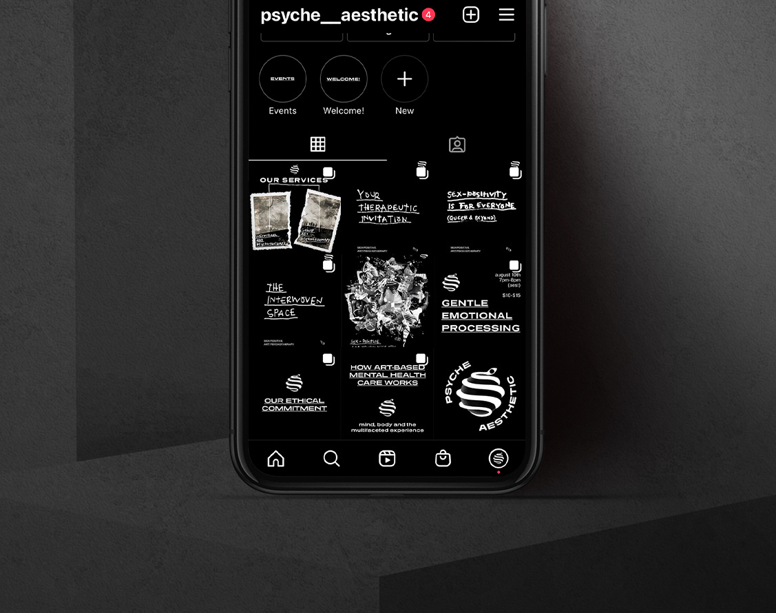 Psyche Aesthetic is a sex-positive art psychotherapy service based in Australia, founded by therapist, Matilda Brown. Their aim is to provide a new generation of health care. I was tasked to design a logo and accompanied brand identity.