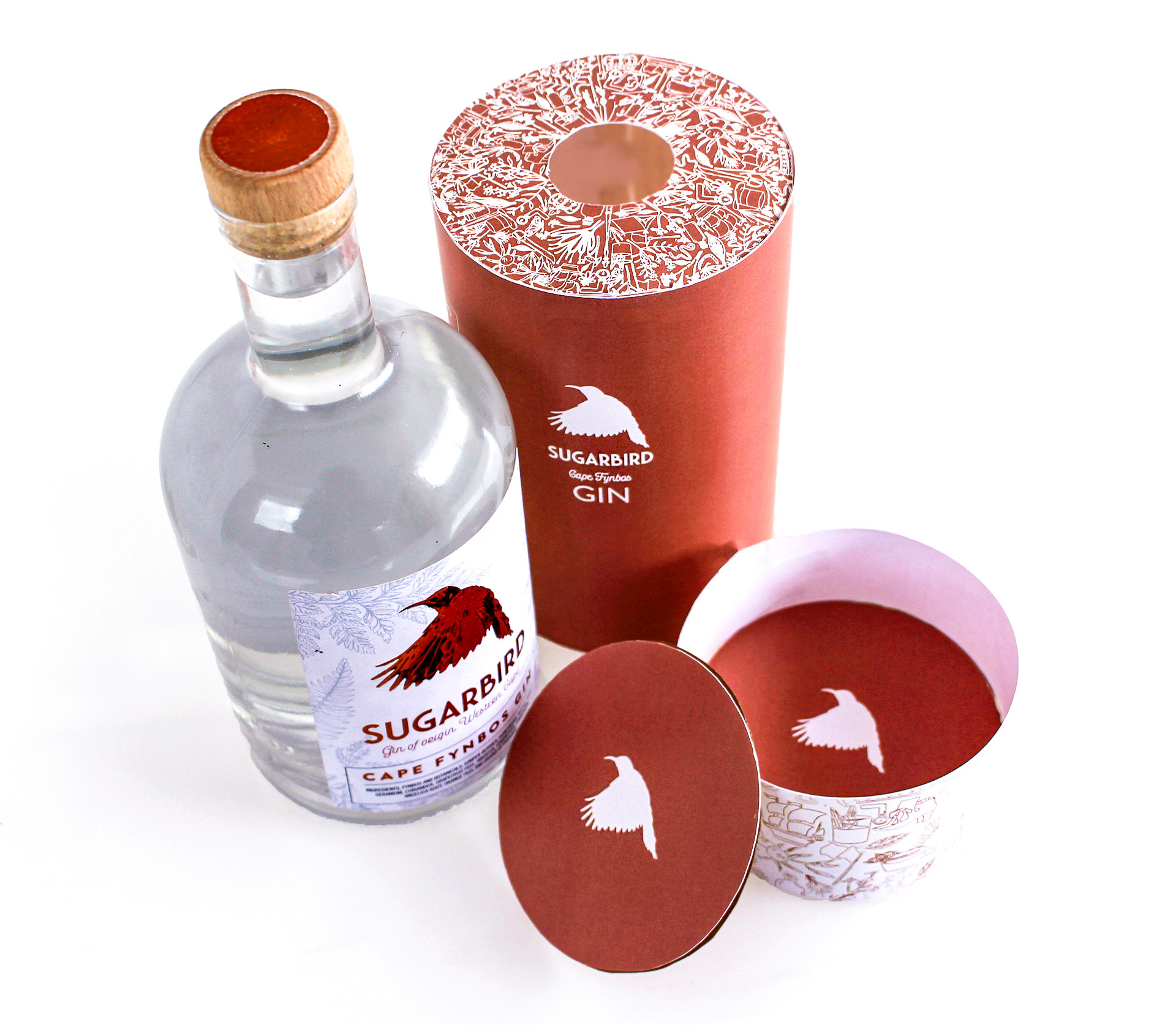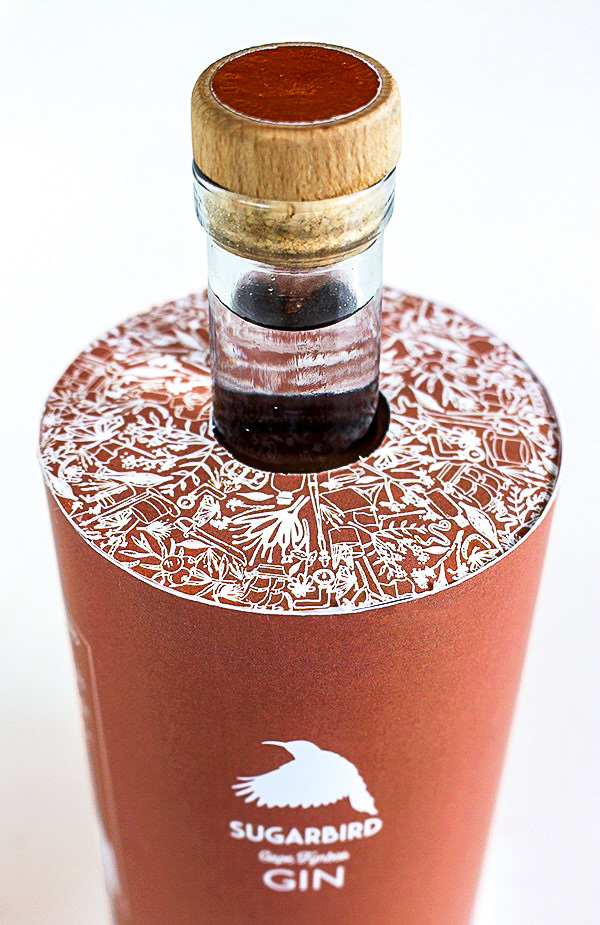 The concept for the secondary packaging itself lends value to the craft side of Sugardbird’s gin. Its metallic colour and cylinder shape are references to the distillery process, making it a bit more elite than the average looking gin.